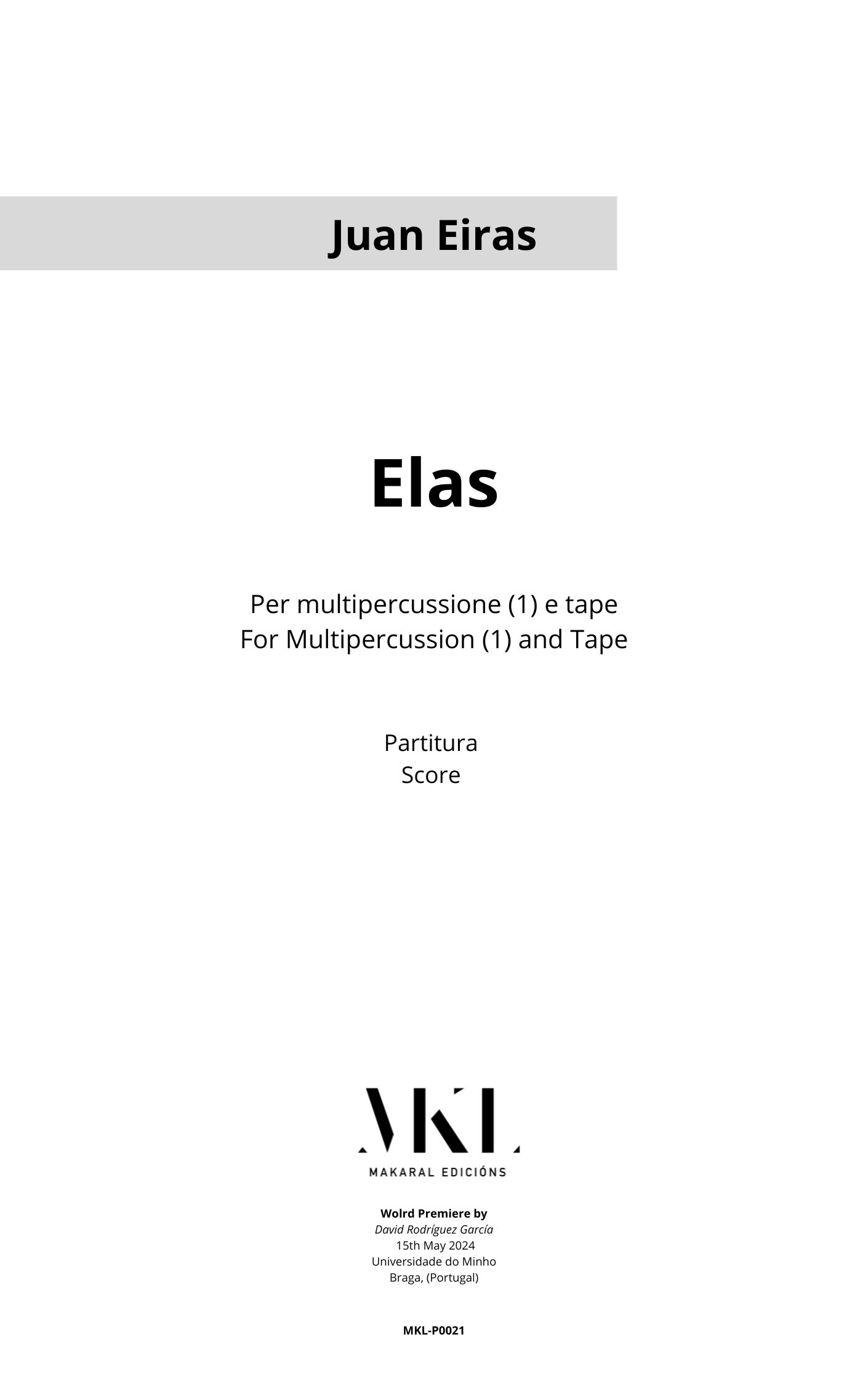 David Rodríguez García estrena: «Elas» (Eiras, 2020-2024), para multipercusión y tape.